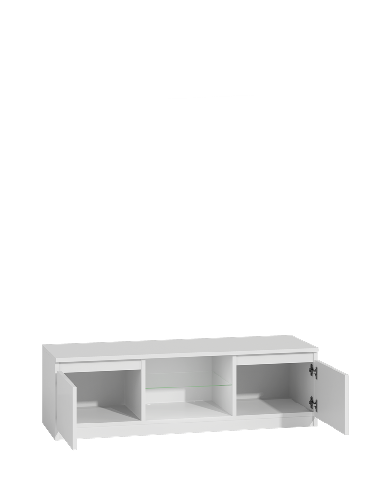 Dzięki naszym szafkom RTV każdy może zaaranżować swoje własne studio domowe. Uniwersalny wygląd sprosta oczekiwaniom wszystkich, którzy cenią połączenie prostoty i elegancji. Mebel posiada lakierowane fronty na wysoki połysk zaś korpus mebla jest laminowany.