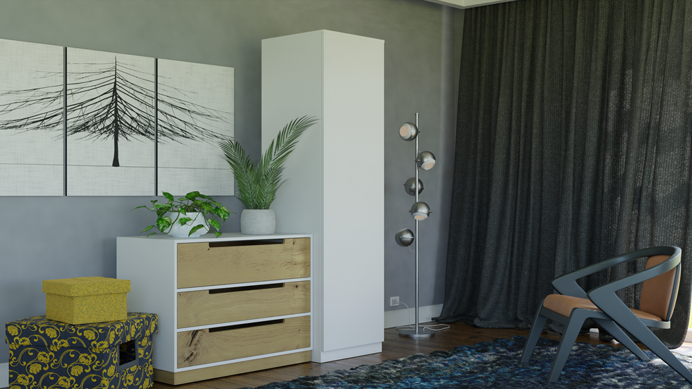 Mebel wykonany z najwyższej jakości płyty laminowanej odpornej na zarysowania i wilgoć wraz z wzmocnieniami obrzeży ABS.