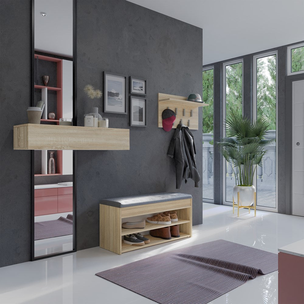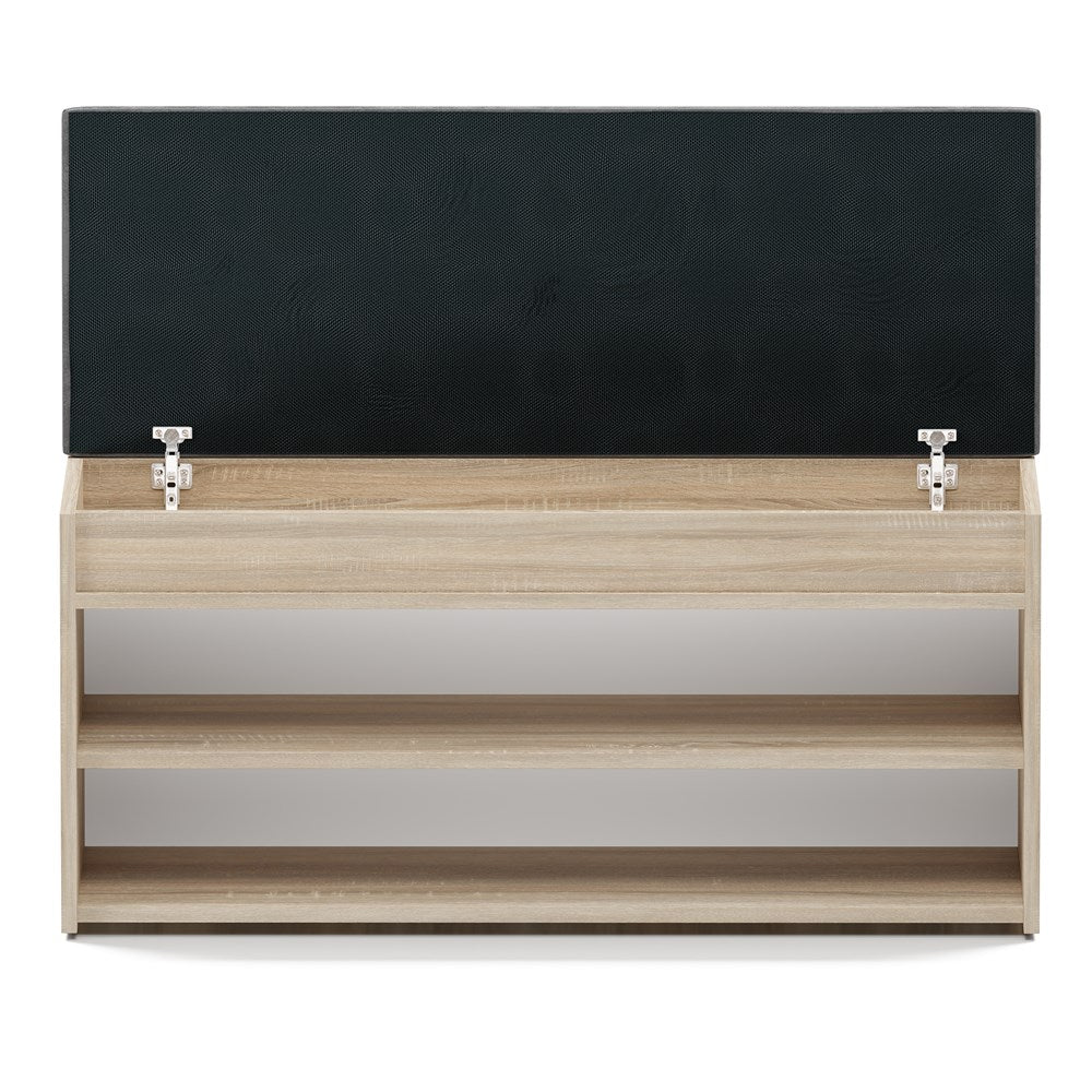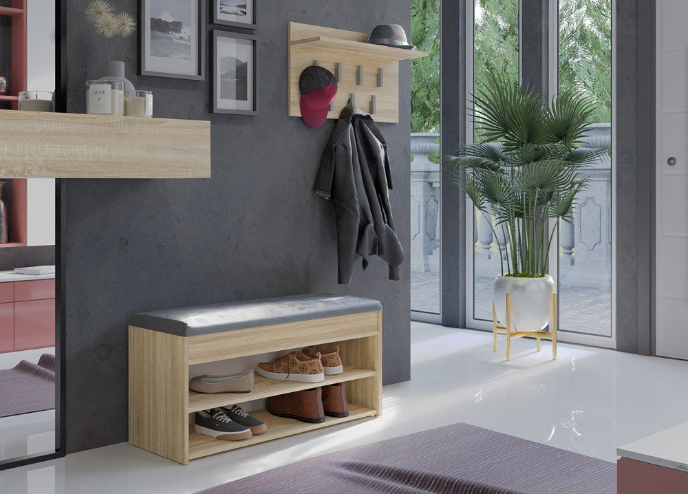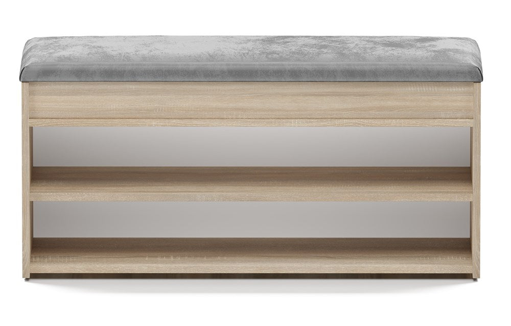 Komfortowa szafka na obuwie z tapicerowanym siedziskiem oraz schowkiem na gadżety. Do dyspozycji są również 2 półki na obuwie.