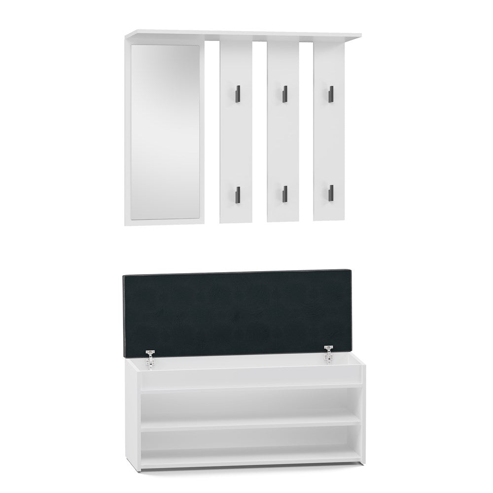 Zestaw wieszak z lustrem + szafka na obuwie z siedziskiem i schowkiem.