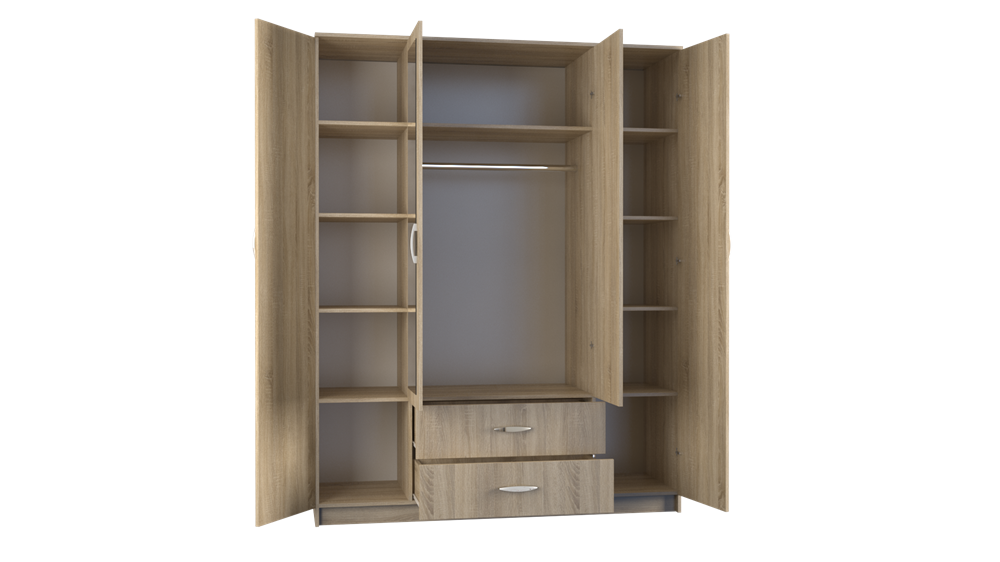 Fronty i boki wykonane są z płyty wiórowej laminowanej o grubości 16 mm charakteryzują się dużą wytrzymałością i atrakcyjnym wyglądem oraz starannym wykonaniem. Krawędzie oklejone obrzeżami ABS, co znacznie zwiększa ich trwałość.