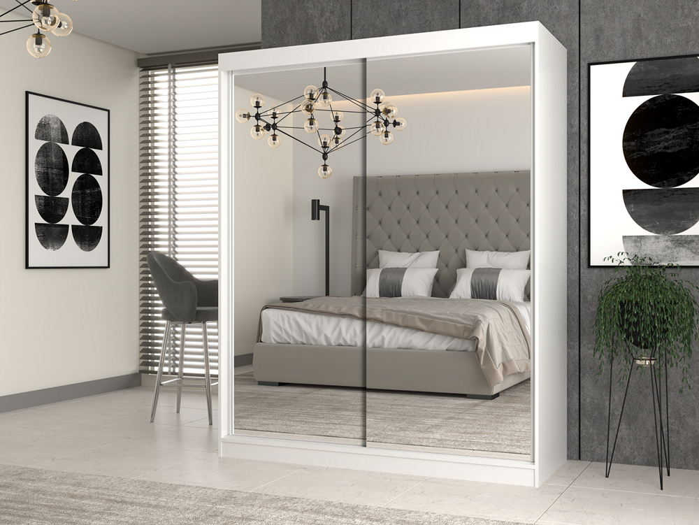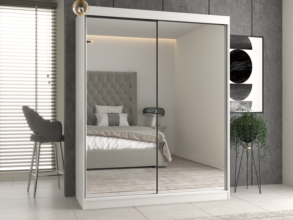 szafa z przesuwnymi drzwiami na których znajdują się 2 duże lustra -