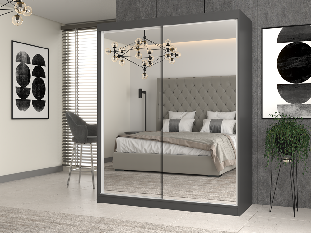 szafa z przesuwnymi drzwiami na których znajdują się 2 duże lustra -